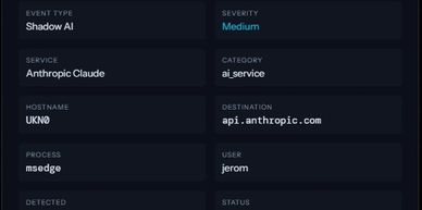 AIRA detects when credentials, internal documents, or regulated data are shared with AI platforms, helping you stop data leakage before it becomes a breach.